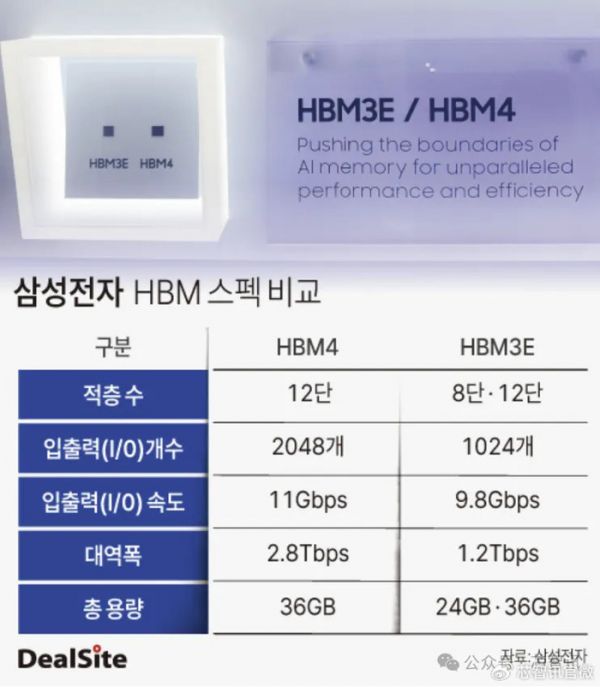 一位熟悉该公司情况的官员表示:“我们目前内部判断,三星电子的HBM4 的主要性能,包括速度,优于 SK 海力士的产品。”他还表示:“我们之前向英伟达提供的12层堆叠的HBM3E价格相对较低,但我们正在与英伟达谈判,目标是以英伟达与 SK海力士签订HBM4供应合同的价格相当。”