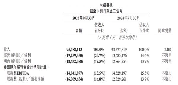 11月28日,美团披露了2025年第三季度业绩报告,财报显示,第三季度美团实现营收955亿元,同比增长2%,低于彭博预期增长的4%。经调整净亏损为160.1亿元,高于彭博一致性预期的138亿。