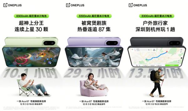 出门不带充电宝,性能满血一整天!一加 Ace 6T 超长续航,陪你出门,撑你到家。”
