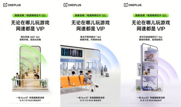 日前,@一加手机 连续发布了Ace 6T新机在网络信号方面的五张预热海报,并配文称,