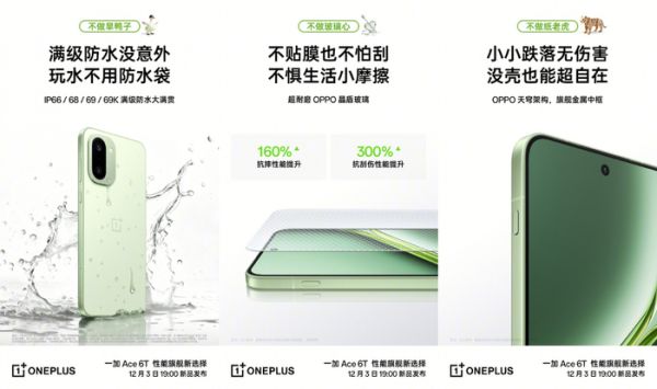 在安全性方面,官方发文称一加Ace 6T旗舰耐用性能全拉满,该机“满级防水,硬核架构,不怕生活小意外!