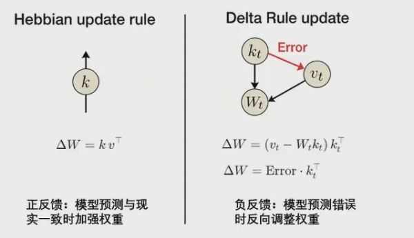 DeltaNet 正是在这一思路下诞生的,它利用 Delta Rule 来更快地写入和更新权重(即记忆状态)。
