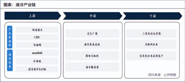产业链中,上游是液冷设备的技术核心,冷却液、CDU、冷板、快接头等散热介质和关键组件,决定整个系统性能与可靠性,技术壁垒与价值量占比最高。中游负责提供液冷整机方案,下游主要是电信运营商和互联网企业等需求方。