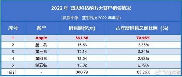 在绑定程度颇深的2022年,苹果甚至为蓝思科技贡献了七成的营收。