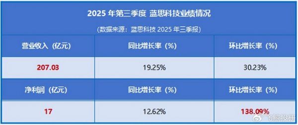 如今,公司2025年第三季度业绩再次让它登上了“顶峰”:单季度营收207亿元,同比激增近20%,净利润17亿元,环比暴涨138%。