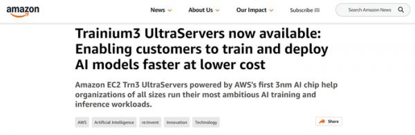1.新一代自研AI芯片Trainium3,性能强化、能耗更低