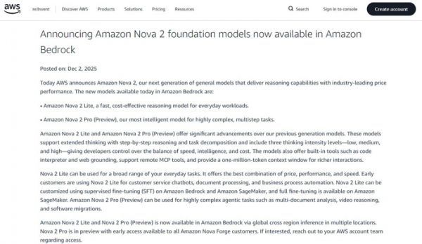 AWS发布Trainium3芯片、Nova 2系列模型及三款AI智能体