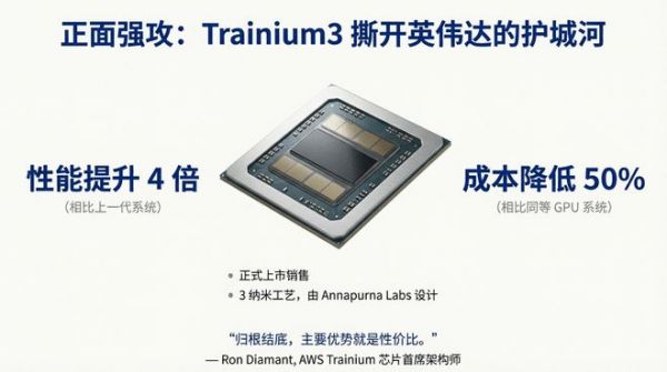 AWS Trainium芯片首席架构师罗恩·迪亚曼特(Ron Diamant)直言不讳地表示:“归根结底,主要优势就是性价比。”