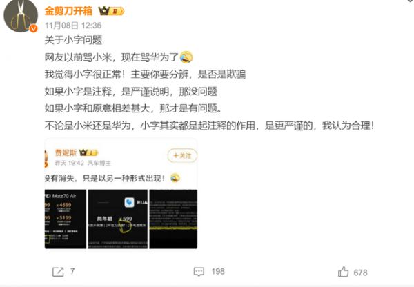 不论是小米还是华为,小字其实都是起注释的作用,是更严谨的,我认为合理!
