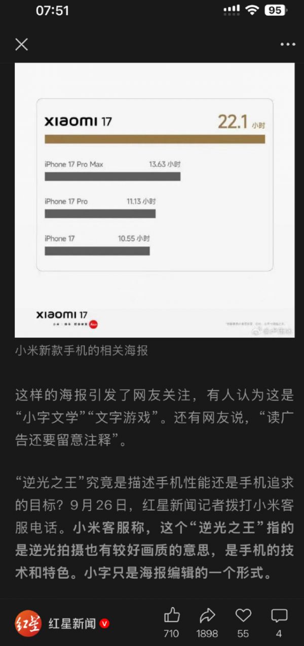 新华社发文谈小字宣传,拿小米17逆光之王举例,胆量为何这么大?