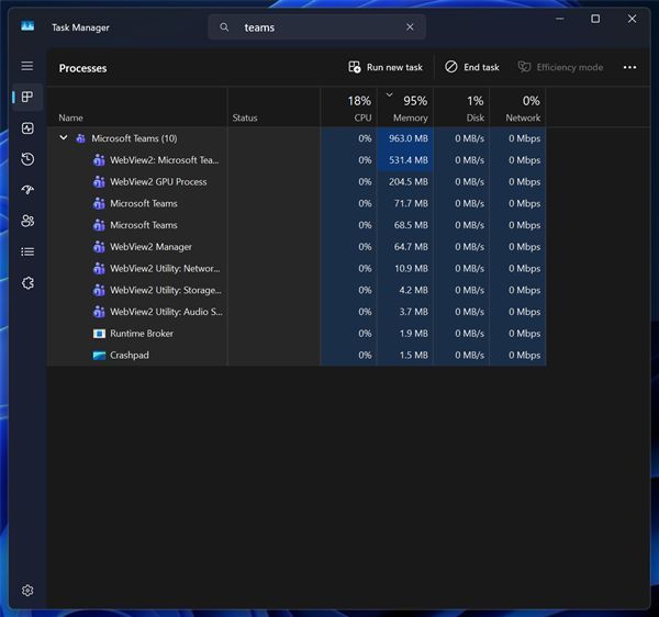 即使是微软自家的Teams,从Electron转向WebView2后,本质上仍是Web应用,闲置时内存占用常驻1GB左右。微软明年试图通过重组应用结构来缓解问题,但核心仍依赖于WebView2。