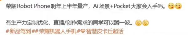 荣耀ROBOT PHONE是荣耀阿尔法战略的关键布局,它是一款集成了AI、智能、高清摄像的创新产品,主打“AI 场景 + Pocket” 核心定位,针对直播、创作等需求进行生产力定制优化,有望重塑高端手机市场竞争格局。其前身可追溯至荣耀Magic8系列以及荣耀7i手机。对此,荣耀官方也把它视为AI终端生态的 “种子产品”,为ROBOT PHONE的技术落地奠定基础。