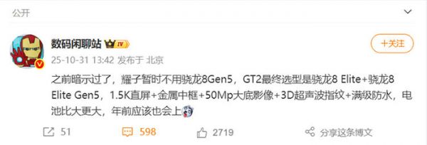 荣耀GT2 Pro疑似被曝光:骁龙8至尊版2+直屏设计,有望年底发布