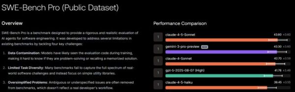 (来源:OpenAI)在软件工程领域,GPT-5.2 Thinking 在 SWE-Bench Pro 测试中达到了 55.6% 的新高分。这个成绩也是超过了 Claude 4.5 Sonnet 和 Gemini 3 Pro。在更基础的 SWE-bench Verified 测试中,GPT-5.2 的得分更是达到了 80%。