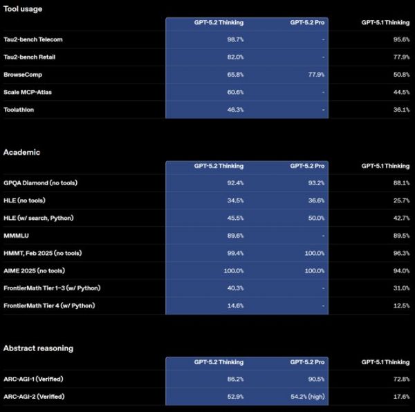 OpenAI发布GPT5.2模型,创多项行业记录