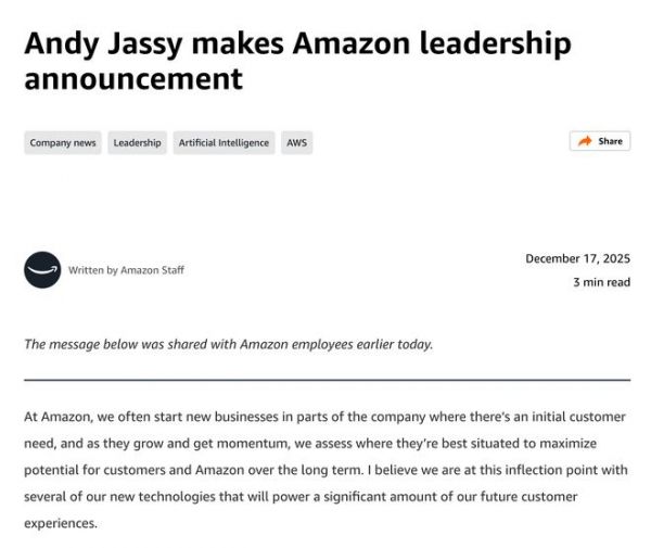 亚马逊AI团队大调整!首席科学家离职、26年老将接任,还要建全新AI部门