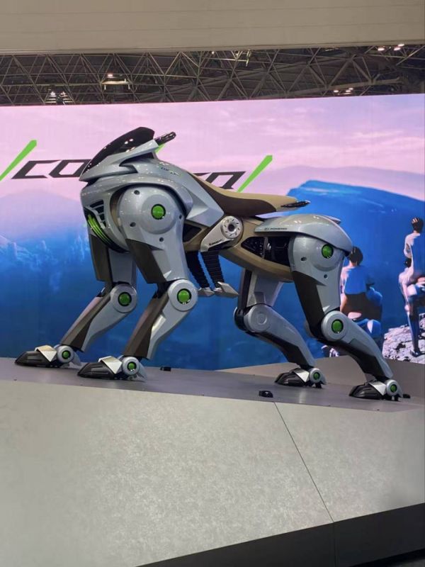 宇树说,看我能做到什么;日本派遣机器人说,我保证不给你搞砸(作者拍摄)日本不搞人形,但是有人形的前哨“四足”。这次在东京机器人展上看到了川崎的CORLEO,这是一种概念型四足机器人载具,使用氢能源,支持人类骑乘与复杂地形穿越。