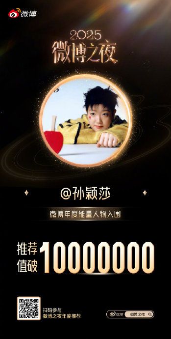 孙颖莎在微博年度能量人物评选中虽实际推荐值达983万(位列第二),但其关联话题智搜指数单日破4亿的惊人数据直接登顶全网TOP1,成为不限圈层的现象级事件,引发全网对"实绩偶像"的热议。