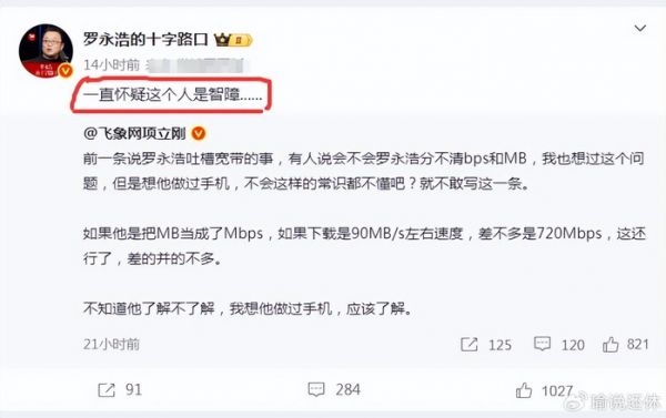 罗永浩看到“项中专”的文章后,给出了一句评价:“一直怀疑这个人是智障”。