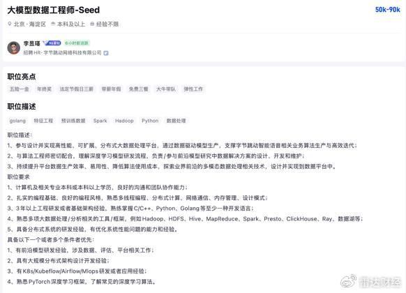 而字节跳动提供的薪资待遇,同样令不少人羡慕。招聘软件显示,字节跳动给予“豆包AI应用工程师”的月薪最高可达7万元,而“Seed大模型数据工程师”最多可拿到9万/月的薪酬。