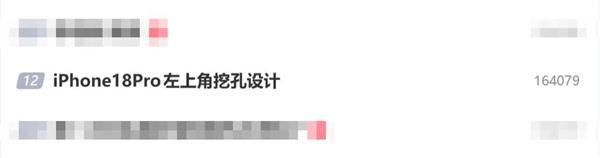 快科技12月25日消息,微博话题"iPhone 18 Pro左上角挖孔设计"上了热搜榜,引发热议。