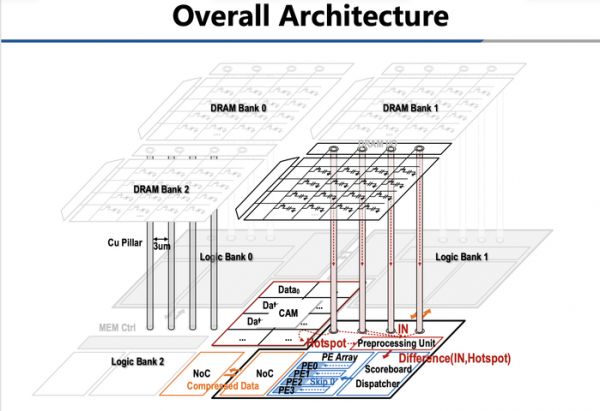 针对诸多行业挑战,2024年计算机体系结构领域顶会ISCA上,清华大学集成电路学院尹首一教授带领团队,发表了题为《Exploiting Similarity Opportunities of Emerging Vision AI Models on Hybrid Bonding Architecture》的论文,首次通过混合键合技术实现逻辑芯片与DRAM的3D可重构,构建了具有超高带宽的三维DRAM存算一体架构,从而提升AI芯片算力能效和面积效率。