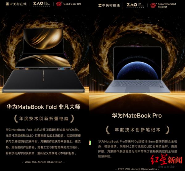 一款产品的行业价值,从来离不开专业层面的检验。在2025年度科技媒体评选中,鸿蒙电脑凭借硬核实力斩获多项重磅大奖:华为MateBook Fold 非凡大师一举拿下太平洋电脑网“2025智臻科技奖・年度智臻产品”与中关村在线“GG100 2025年度技术创新折叠电脑”双重荣誉,其在折叠形态、智慧交互上的突破被行业高度认可;华为MateBook Pro则获评中关村在线“2025年度技术创新笔记本”,成为便携办公与创作领域的标杆之作。这些奖项不仅是对产品设计与技术创新的肯定,更反映了行业对鸿蒙系统生态潜力的一致看好。