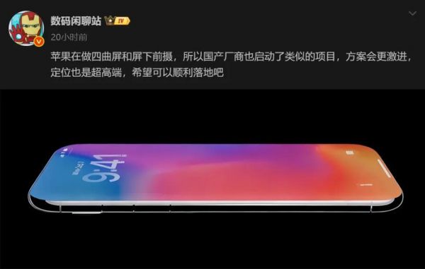 近日,博主@数码闲聊站也对周年版iPhone进行了爆料,透露了相关进度,表示苹果已在测试四曲面屏幕,以及屏下前置摄像头技术。