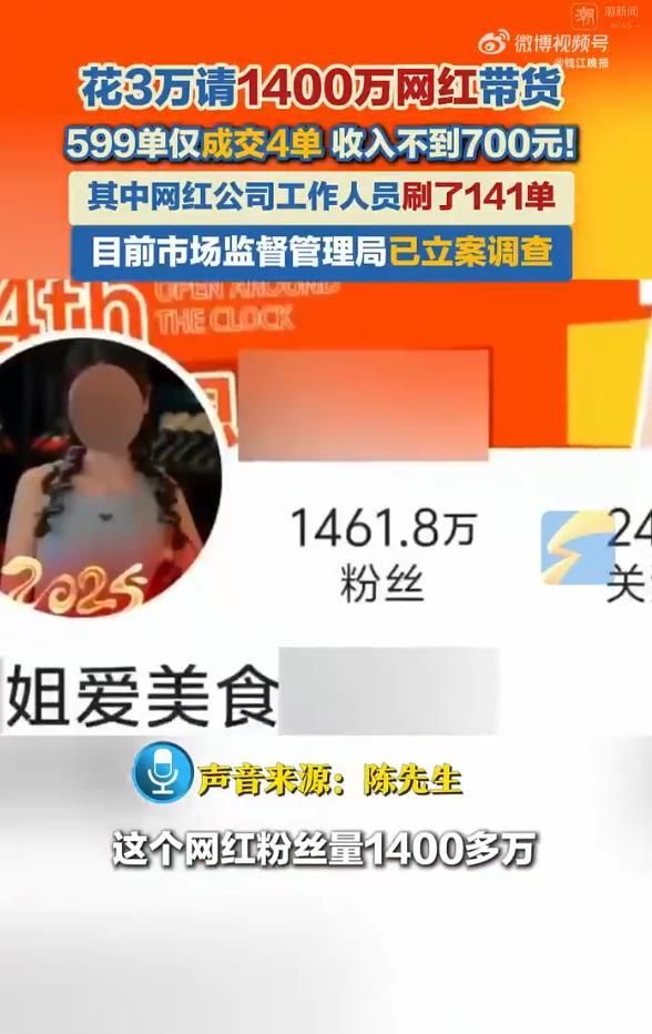 花3万请1400万网红带货仅成交4单,到手里收入只有676.6元