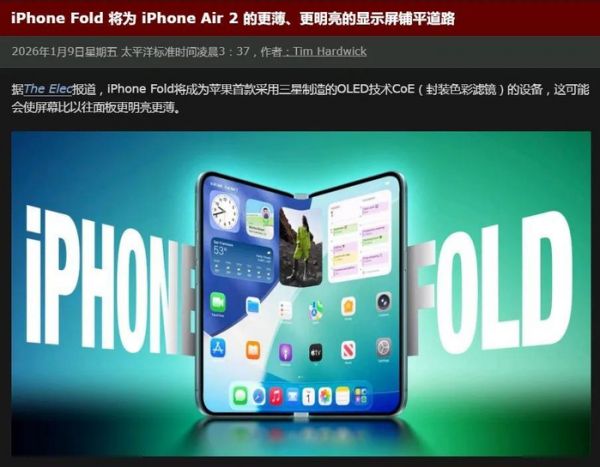 报道中指出,折叠屏iPhone将成为苹果首款搭载COE OLED技术的设备,随后苹果还计划将该技术拓展到iPhone Air 2上,使其机身更加纤薄。