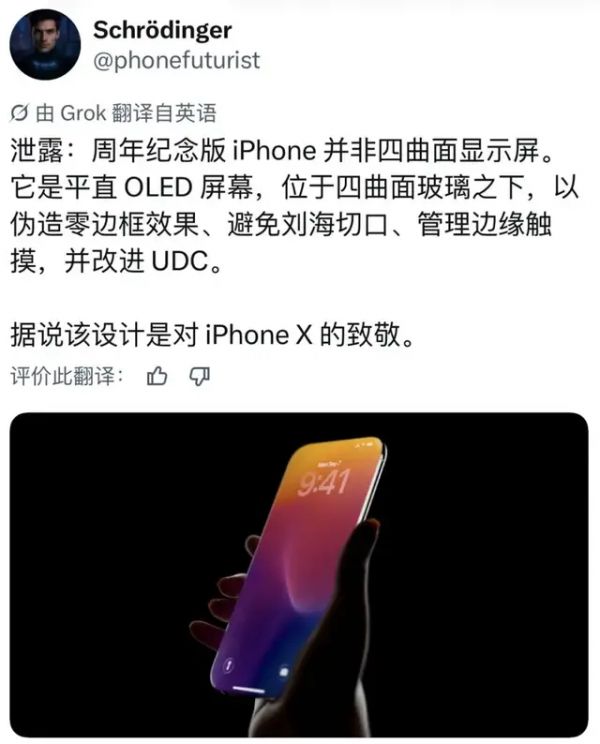 但现在最新的消息显示, 20 周年纪念版 iPhone 并不是采用四曲面 OLED 显示屏。