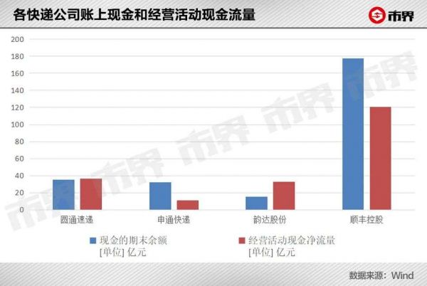 但这样的局面,估计还得维持一段时间。因为从各家快递公司的经营现金流和账上现金来看,现金流还是足够多,这场战争可能会是个拉锯战。