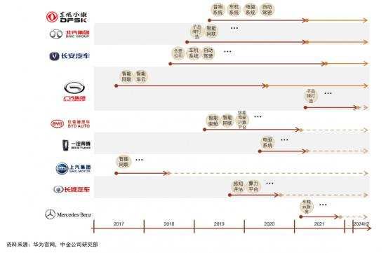 看上去虽广,但是大多集中在芯片、物联网、5G领域。真正愿意与华为深度合作的传统汽车制造商只有小康、北汽和长安。