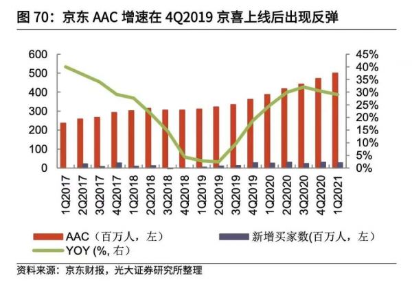 从用户数来看,2019年第三季度,京东AAC增速就触底反弹。