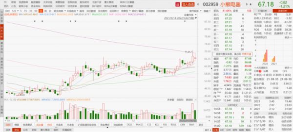 近日,小熊电器的股价形势似乎出现了转机,自10月22日以来,累计回弹超46%。