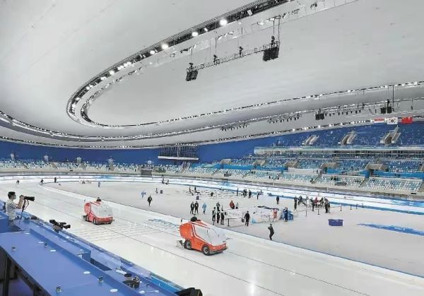 场馆的赛道也是改造更新的重点,因为冰上项目比赛对冰面标准很高,无论是场馆室内温度、湿度,还是冰温、水质,都需要从细节入手确保冰面质量。而二氧化碳制冰的特点是绿色环保、能效高,冰温也更均匀。据悉,在北京冬奥会4个冰上场馆运用了新型二氧化碳制冰技术。不仅减少了传统制冷剂对臭氧层的破坏,制冷过程中产生的大量余热可回收利用,用于供暖、除湿、融冰、制备热水等,比传统方式效能提升30%。
