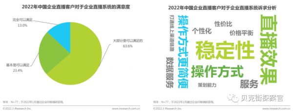 据艾瑞咨询数据,现阶段的企业直播客户,有63.6%都认为现有的直播系统已经可以满足其大部分的需求了,还有23.4%的客户至少是可以基本满足其直播需求。