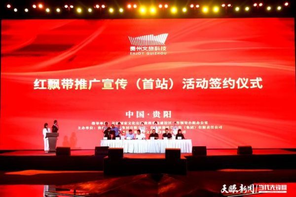 忆长征岁月,筑时代盛景。7月31日晚,辉映红飘带·奋进新征程——红飘带宣传推广(首站)活动在贵阳举行。活动中,贵州省文化旅游科技有限公司与中国旅游集团、携程、美团、马蜂窝、贵旅旅行、贵州海外旅游等相关文旅企业、平台举行了签约仪式。