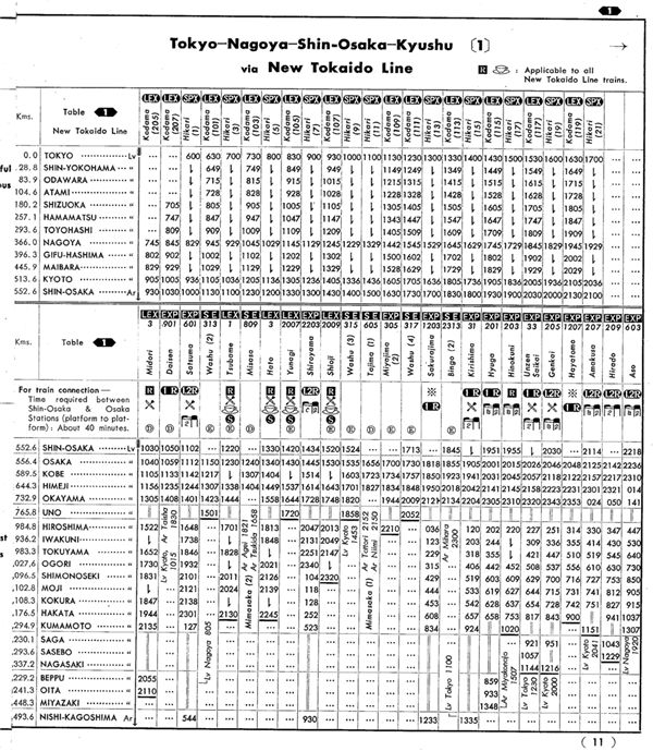 当初,在东京和新大阪之间,“光”号列车的行车时间是4小时,“回声”号是5小时,发车60趟。截至1965年3月19日,运送旅客总人数达1000万人。因业绩显著,同年11月,“光”号列车和“回声”号列车均进行提速,分别达到当初预期的3小时10分和4小时。1966年,往返车次增加到120趟,截至1967年7月13日共运送旅客达1亿人。如果从不同运输工具的运量来看,1967年度的新干线运送了沿途一半以上的旅客。