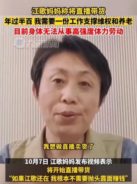 除了公益之外,江歌妈妈还在筹备创业,她坦言,需要一份工作支撑其继续维权和养老,因为年纪已大,身体无法支持她从事高强度体力劳动,所以考虑的方向是做直播带货。