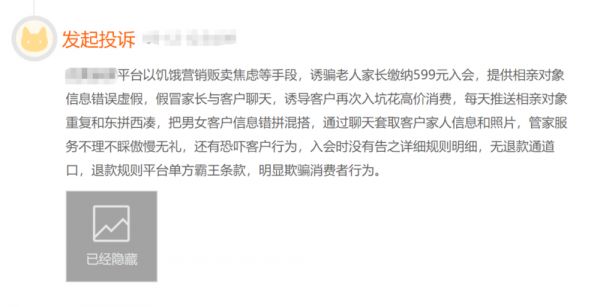 可也有用户吐槽,说他所用的相亲小程序涉嫌虚假宣传: