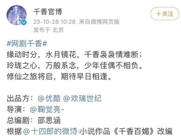《千香引》的原著作者发博称《千香引》是空壳开机……